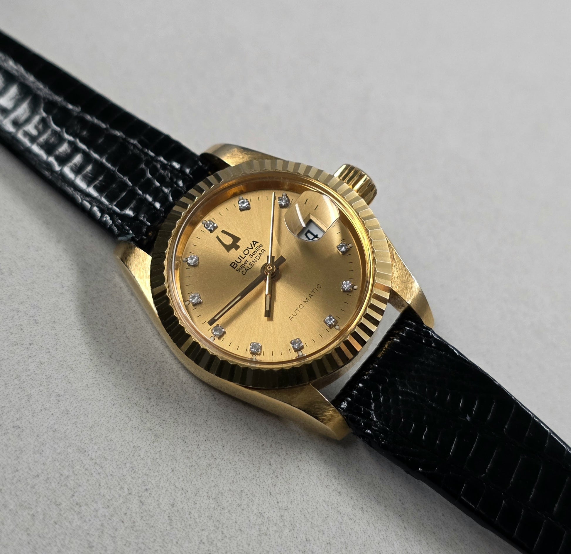 This model represents the engineering level Bulova achieved in women's automatic watches in the 1980s.