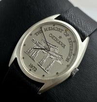 The Citizen Okinawa 6700-673310 YO is a very special and collectible vintage model known as the Citizen "Memory of Reversion Okinawa". The product you are reviewing was manufactured in 1997. This watch was released in 1972 to commemorate the return of Okinawa from the United States to Japan. This was a very important event in Japanese history. The case of the watch is made of 920 sterling silver (both the case and the buckle are made of this grade of silver), making it a watch made of precious metal. The watch is powered by a Citizen caliber 6740 manual winding mechanical movement with 23 jewels and operates at 28,800 bph. Since the leather bracelet of the watch has worn out over the years, I have added a new genuine calfskin bracelet. If you do not want to use the watch with the Okinawa patterned dial, a plain and unpatterned original dial has been added to the box by Citizen for a change. This watch has never been used before and is shipped with its full box content. Due to its historical significance, silver casing and limited edition, the Citizen Okinawa 6700-673310 YO is a sought-after watch by Japanese vintage collectors and those interested in Japanese history. The product you are viewing was produced in 1972.