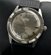Fortis Stratoliner Power Touch is a vintage wristwatch model produced by Swiss watchmaker Fortis. This model was produced especially in the mid-19650s and reflects the design approach and technological developments of the period. In fact, some sources use the term Diver's Watch for this watch, but I could not see any other feature that includes the features of a diver's watch other than its outer bezel. However, we can say that it has a Diver Style in terms of appearance. This watch is powered by the 17-stone Felsa 4008 and has a 44-hour power reserve. If you are interested in old and very rare vintage Swiss watches, you can evaluate this product. The product you are reviewing was produced in 1965.