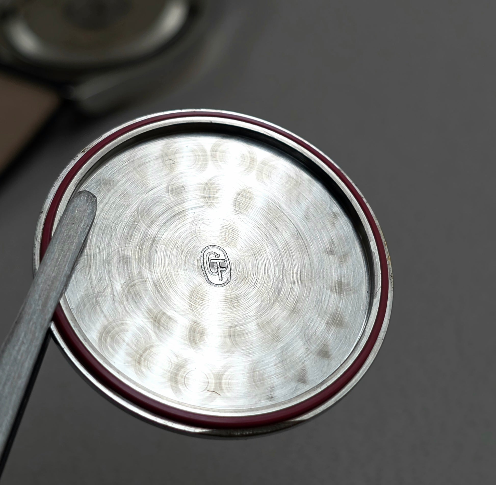 The GF hallmark (Gérald Frey SA) indicates that this model was produced entirely in-house, using genuine materials, as it was the workshop that produced the exclusive cases for Bulgari during this period.
