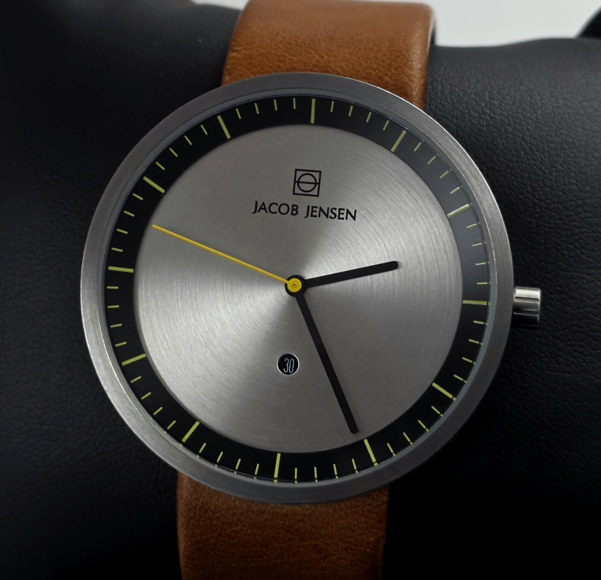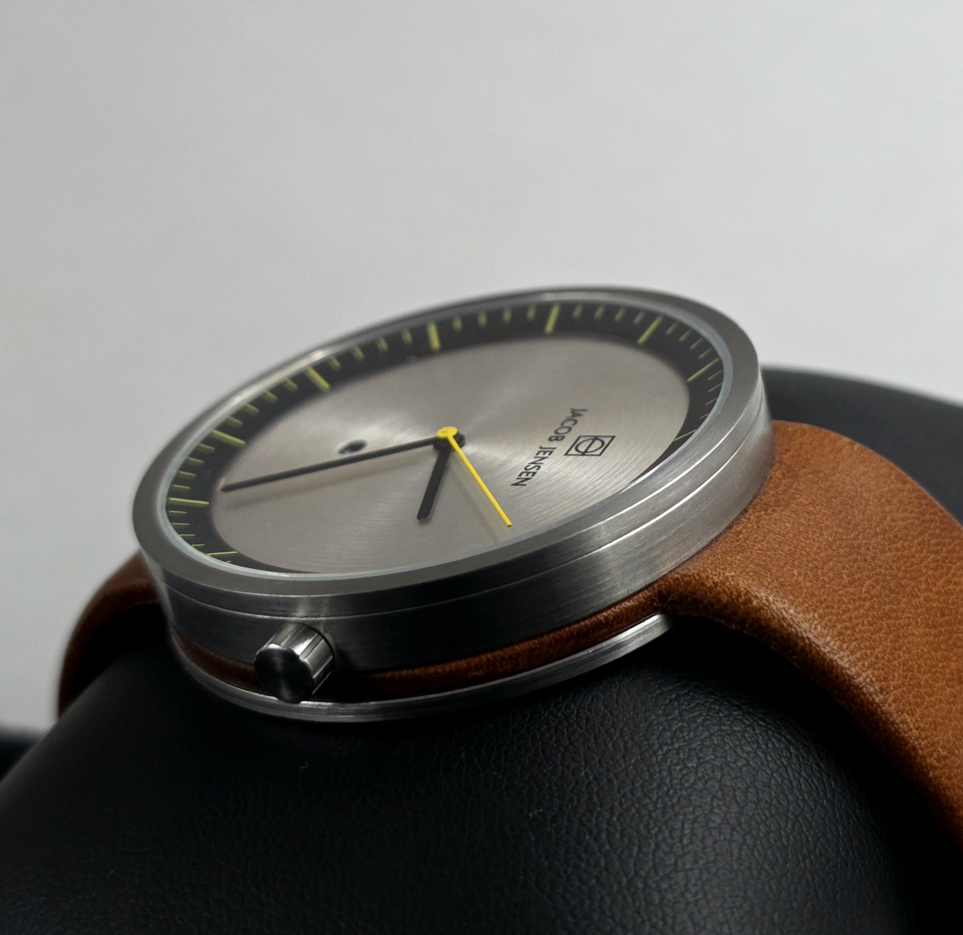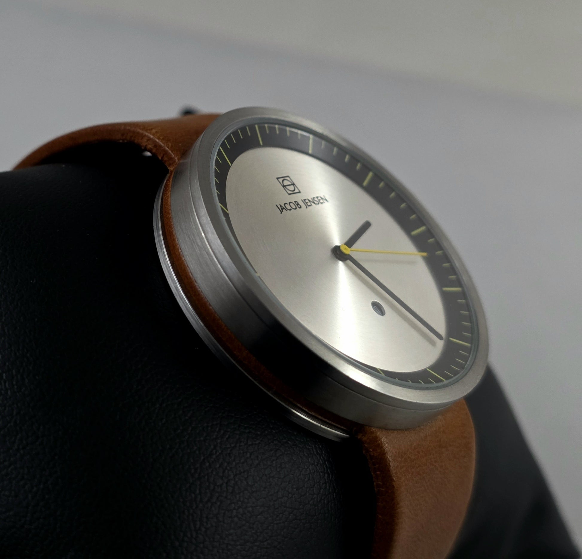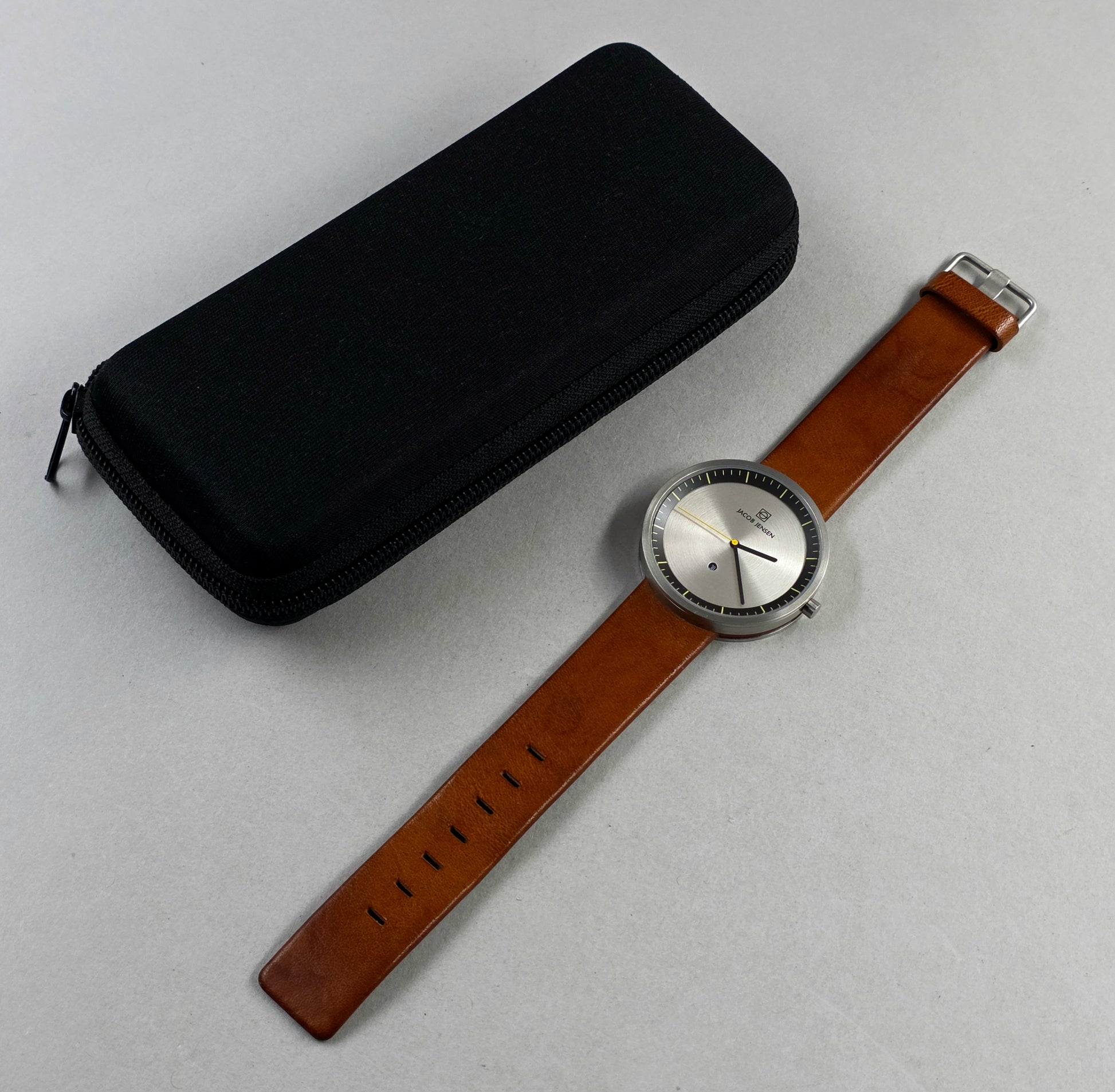 This Jacob Jensen Strata 271, in excellent condition, is a tangible example of the principle "form follows function" on the wrist. Being a recent series, it's a must-have for those seeking a modern piece, in like-new condition. It's both a collectible design object and a reliable everyday watch.