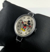Bradley Mickey Mouse 023 is a vintage wind-up watch featuring the iconic Disney character Mickey Mouse. It is produced by Bradley Time Corporation, which was founded in 1904 and is a registered trademark for character collectible watches. It is known that the Mickey Mouse Bradley 023 model was produced in the early 1970s. The Bradley Watch has an oval-type nickel case and a beautiful face that shows Mickey Mouse's facial features and arms. This is a truly unique product and a true collector's item.