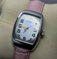 Dubey & Schaldenbrand aims to create special and distinctive watches that blend modern and vintage aesthetics, especially with their historic tonneau (barrel) designs similar to Franck Muller. Dubey & Schaldenbrand produces limited edition and unique pieces, placing importance on high craftsmanship. The model you are reviewing was produced in 2002 and is offered with 2 spare leather bracelets and its original box.