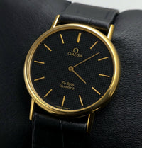 Omega DeVille referans 191.0092, 1970'lerden 1980'lere kadar uzanan vintage bir kuvars saattir. Basit ve zarif bir tasarıma sahip klasik bir elbise saatidir. Saatin yuvarlak altın kaplama kasası, altın tonlarında kolları ve işaretleri olan Waffle desenli siyah renkli bir kadranı vardır. Saat, hakiki deri kayış ve orijinal Omega tokasıyla birlikte gelir. Günlük kullanım veya özel günler için harika bir seçimdir. Klasik ve zarif bir kuvars saat arıyorsanız, Omega DeVille 191.0092 harika bir seçimdir.