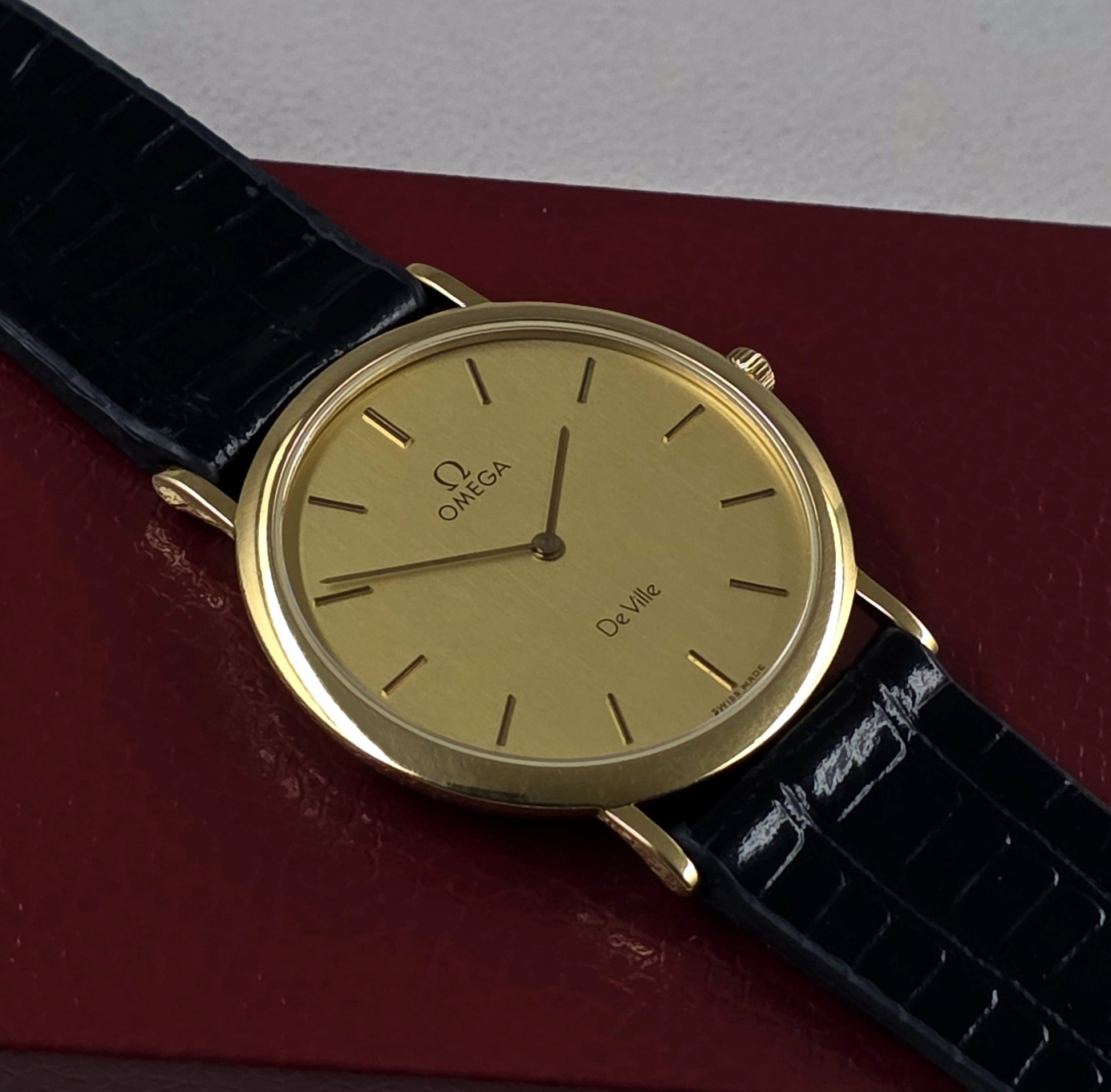 Extras: Comes with original leather bracelets and a period-appropriate Omega box