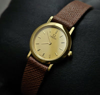 The Omega 595.0097.2 is a vintage women's quartz watch from the De Ville collection. The model, produced in the early 1990s, stands out with its stylish design and heavily gold-plated case. The watch comes with a new calfskin bracelet and the original Omega leather bracelet that was previously worn. With its simple and luxurious design, this Omega Lady is an elegant and timeless watch in any situation. If you are looking for a reliable and accurate timepiece that will last for years, the Omega De Ville 595.0097.2 is a great choice. This product was produced in 1994 and is in simply amazing condition.