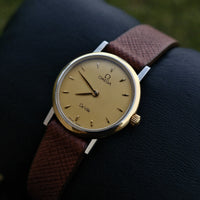 The Omega De Ville Classic 595.1111 is a vintage women's watch with a classic and elegant design. It was manufactured in 1991 and has a quartz movement. It is powered by the Omega caliber 1471 ETA 280.00X movement, known for its precision and reliability. The Omega 1471 is a popular choice for women's watches and is often found in vintage models. The bezel of this watch is gold, and in watchmaking terms this is called a half-gold case. The elegant piece you are reviewing was made in 1991.