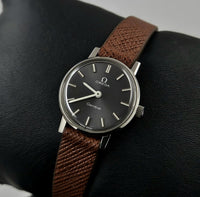 The Omega Genève Lady 511.0457 is an elegant and classic women's wristwatch, especially popular with collectors. Part of Omega's rich watchmaking heritage, this watch combines elegance and durability. This model is powered by the 17-jewel Omega Cal. 625 movement and has a manual winding feature. This movement is known for its high precision and reliability. The product you are looking at was manufactured in 1974 and is in perfect condition with its dark grey colored dial.