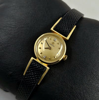 Omega 511.199 is an elegant vintage Omega women's watch with an 18-karat gold casing, long lug design, diamond details and a hand-wound mechanism, produced in the 1960s. This product is a special series and has very rare details. If you are looking for a vintage, unique, luxurious and elegant watch, you can consider this model. This rare product you are examining was produced in 1966 and is currently 59 years old. (There is some slight wear on the original box.)
