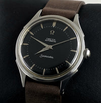 The Omega Seamaster 2637-7 SC is a very popular vintage Omega model among collectors with its classic design, rare Caliber 354 movement and durability. The Omega Seamaster is one of Omega's most established and iconic watch series. Introduced in 1948, this series initially stood out with its water resistance feature and over time was divided into different subcategories such as diver's watches, sports watches and stylish watches suitable for daily use. The Omega Caliber 354 is an automatic "buffer" mechanism of historical importance from the 1950s, known for its reliability, accuracy and use in iconic Omega Seamaster watches. If you are looking for a vintage and special Omega, I recommend you take a look at this very rare black Seamaster model. The product you are reviewing was manufactured in 1950.