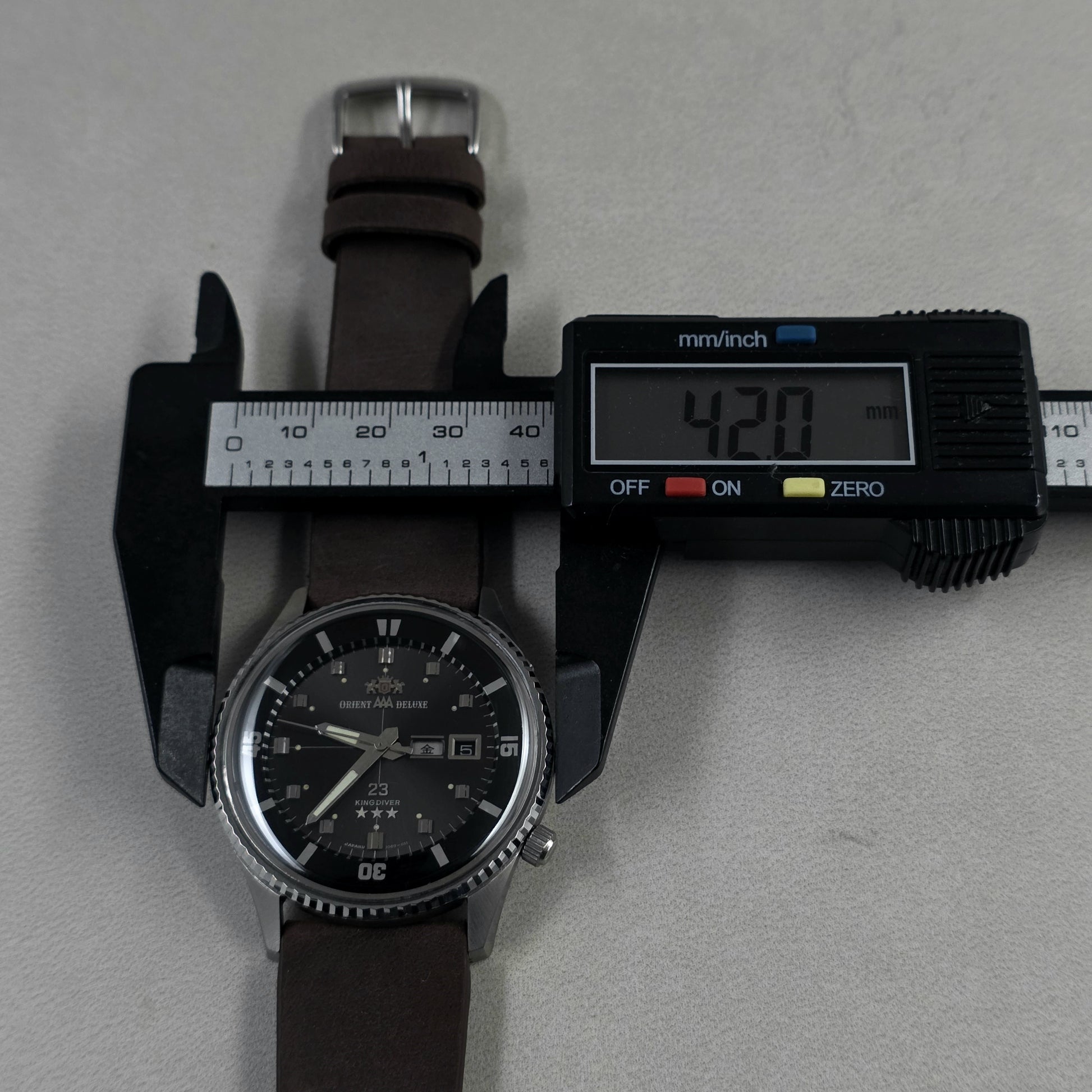 This Orient King Diver Deluxe is one of the very few examples that has maintained such sharpness of case and clean dial despite its half-century age. Especially in an era where re-issue models are abundant, owning a vintage model with the original H-5 caliber and manufactured in May 1971 will enhance the historical depth of your collection. The flawless operation of the inner rotating bezel and Kanji day disc further enhances the watch's rarity.