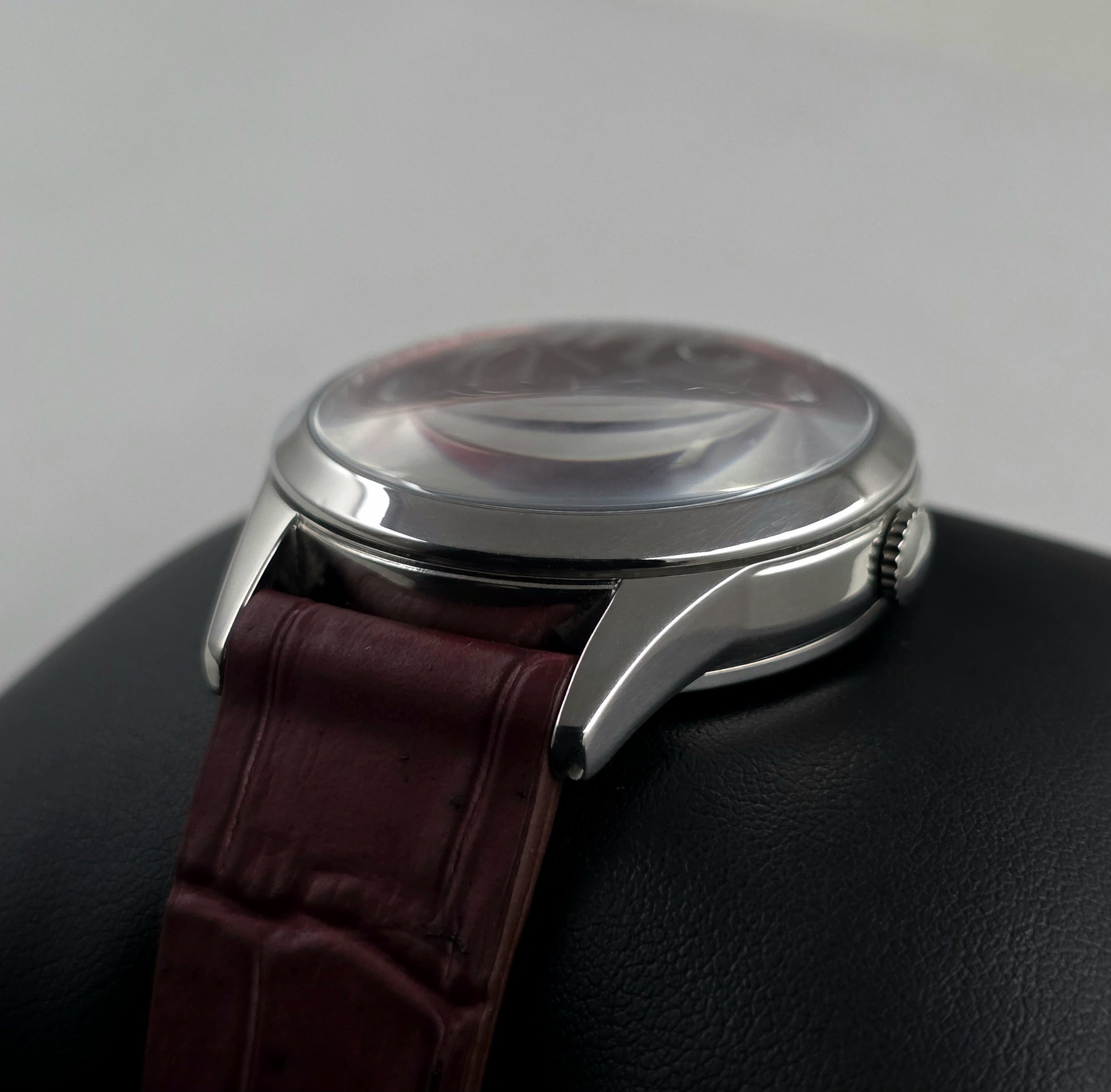 Romantic elegance: The harmony of a red dial and burgundy leather strap.