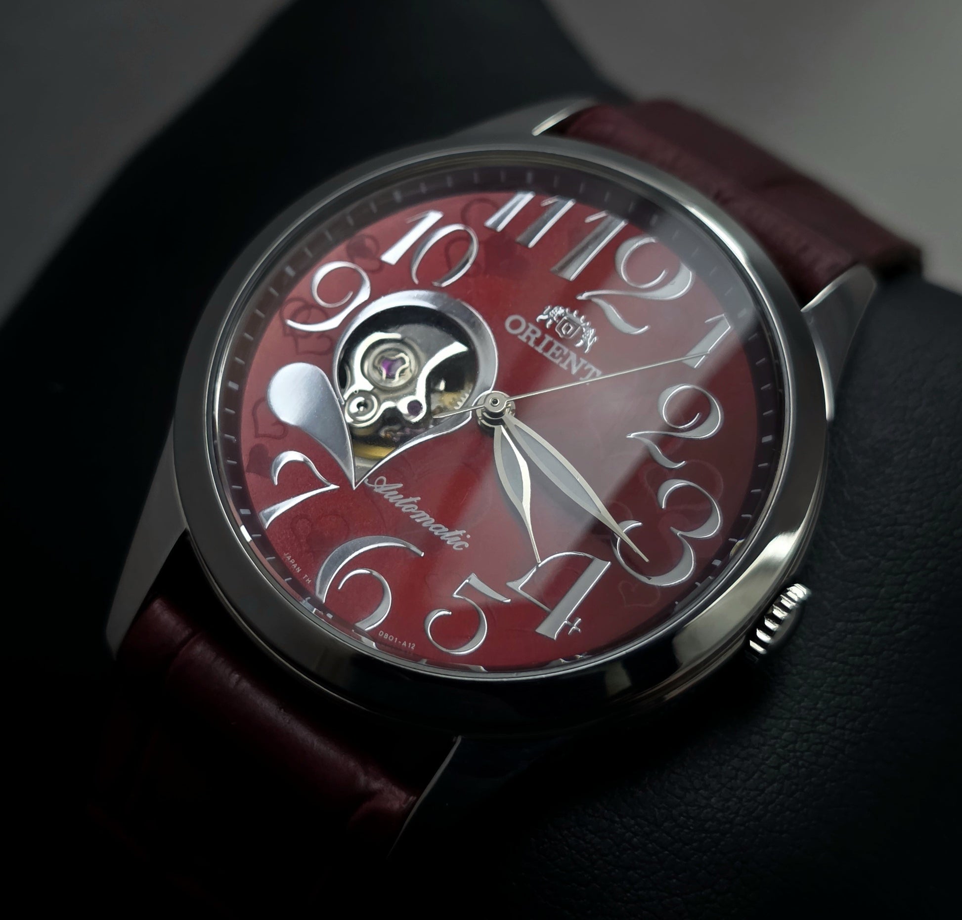 Orient's design philosophy embraces emotional connection as much as technical excellence. The DB01-Q1 CA presents this in its most poetic form: the open-heart movement and heart motifs on the dial create a watch that not only measures time but also makes it felt.