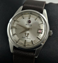 Rado Golden Horse 343942 is an automatic watch first introduced in the 1960s. It is a popular model among collectors, known for its classic design and reliable ETA 2824-2 movement. The watch has a gray dial with stainless-tone luminous hour markers and hands and a date window at 3 o'clock. The case is made of stainless steel and has a diameter of 35 mm. The product comes with a leather leather strap.
