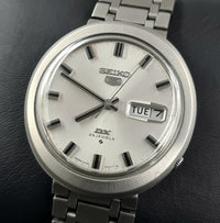 The Seiko 5 DX 6106-8070 is a very rare vintage watch from the Seiko 5 DX series. The Seiko 5 DX is a sub-line of the popular Seiko 5 series, known for its automatic movements and day-date complications. The "DX" designation usually indicates a slightly higher-end finish or features than the standard Seiko 5. It is powered by a 25-jewel Seiko 6106 automatic movement. This movement has both day and date displays. The 6106 movement was known for being a very reliable movement in its time. In short, the Seiko 5 DX 6106-8070 is a vintage automatic day-date watch from the Seiko 5 DX series, which was popular in the late 1960s and early 1970s. Its robust movement and retro design make it a sought-after piece for vintage Seiko collectors. The item you are viewing was manufactured in 1968.