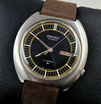 The Seiko 7019-8050 is a rare vintage watch model powered by the 21-jewel 7019 movement. This product was produced in the 1970s and is known for its dial designs with different color variations, unlike classic dials. The Seiko caliber 7019 is known for its stable and reliable performance. If you are looking for a vintage Japanese watch with an ergonomically compatible and beautiful dial design on your wrist, this may be the model you are looking for. The product you are reviewing was produced in 1972 and is in excellent condition.