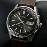 The Seiko 4006-7012 is a vintage automatic watch from Seiko’s Bell-Matic series that was first introduced in 1966. It was one of the first watches to feature an alarm complication, making it a pioneer in this particular watch category. This feature literally means a built-in mechanical vibration alarm that you can set to go off at a specific time. Unlike many mechanical alarm watches that use a separate crown to set the alarm, the 4006-7012 uses the main crown for both timekeeping and alarm setting. The Bell-Matic is a popular choice for travelers and business people who need a reliable way to wake up or remember appointments. This model you are reviewing was produced in 1972 and is in excellent condition.