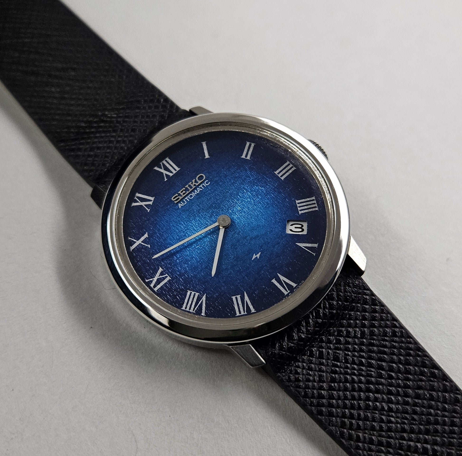 The approximately 34mm stainless steel case is designed to perfectly fit the wrist—not too large, not too small. Its slim profile allows it to slip easily under a shirt cuff, ensuring comfort for everyday wear. But at a table, it draws attention when the light hits it. This balance is one of the finest examples of Seiko's design philosophy.