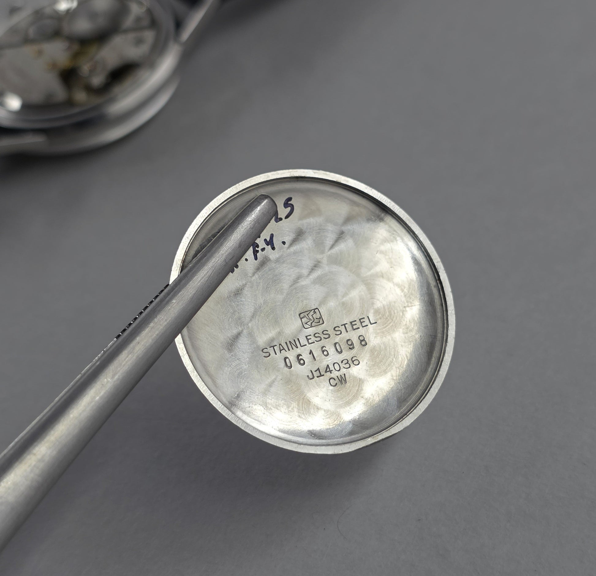 The watch's overall condition is quite well-preserved. The dial pattern is clear, and the indices retain their original form. While the case back shows signs of wear, this watch maintains an authentic appearance befitting its period.