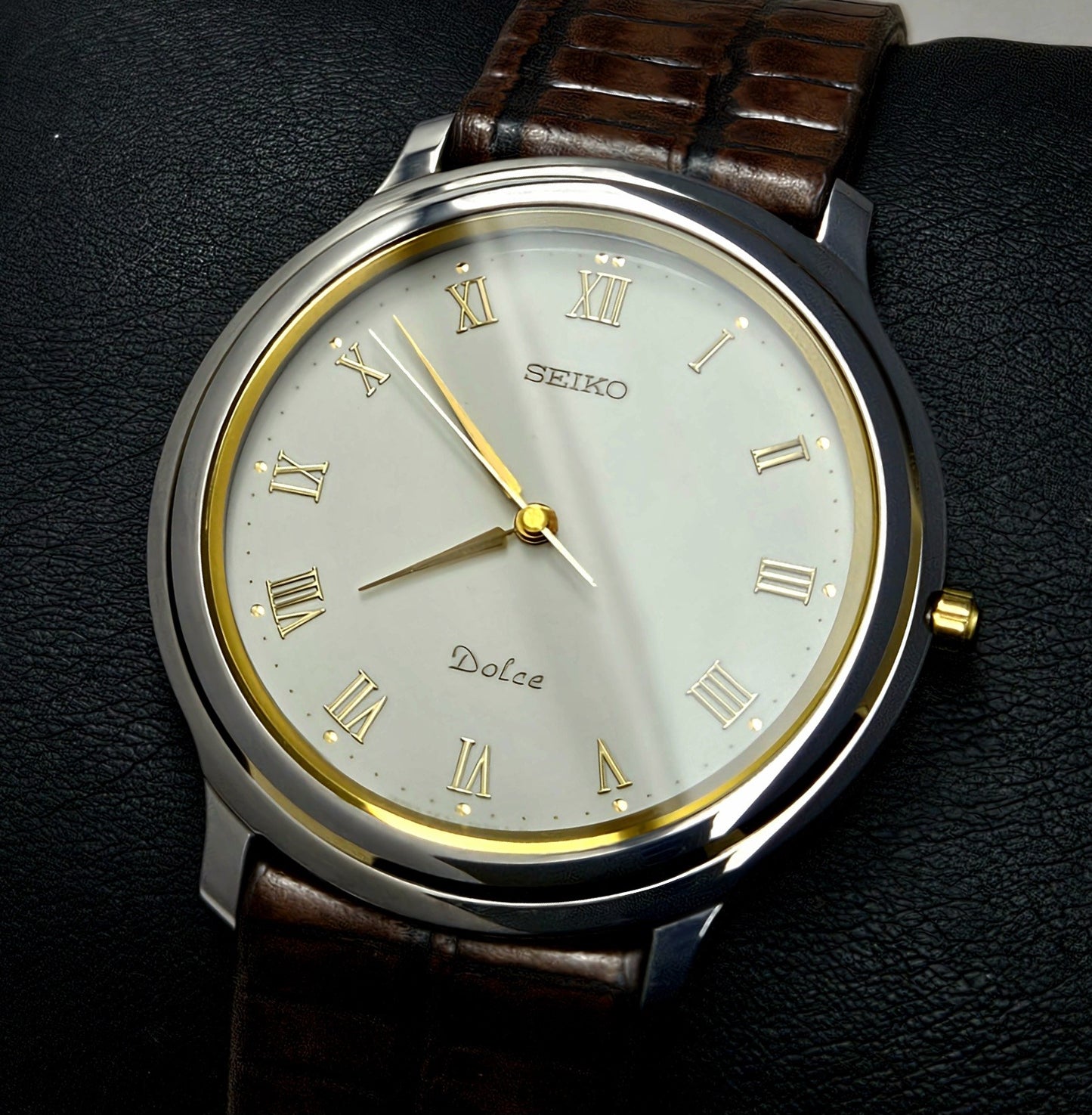 Seiko Dolce Where Elegance Meets!The Seiko Dolce 5E31-7A20 is a watch model that stands out with its timeless elegance and elegant design. Especially popular among vintage watch collectors, this model offers both a classic and modern look. Launched in 1984, the Seiko DOLCE collection was the brand's response to the growing demand for stylish, high-quality dress watches. Combining high-precision timekeeping with elegant style, Seiko has created a collection that perfectly represents the sophisticated lifestyle of men and women. The Seiko 5E31-7A20 is no exception and is a great option for everyday wear as it is a versatile watch that can be worn top or bottom. In addition to all this, you can be sure that you will forget that this product is on your wrist most of the time with its very thin structure. The product you are reviewing was manufactured in 1990.