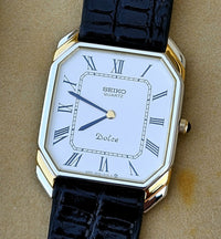 Seiko Dolce Where Elegance Meets! The Seiko Dolce 9520-5110 is a watch model that stands out with its timeless elegance and elegant design. Especially popular among vintage watch collectors, this model offers both a classic and modern look. Launched in 1980, the Seiko DOLCE collection was the brand's response to the increasing demand for stylish, high-quality dress watches. Combining high-precision timekeeping with elegant style, Seiko has created a collection that perfectly represents the sophisticated lifestyle of men and women. The Seiko 9520-5110 is no exception and is a great option for everyday wear as it is a versatile watch that can be worn top or bottom. In addition to all this, you can be sure that you will forget that this product is on your wrist most of the time with its very thin structure. The product you are reviewing was manufactured in 1987. NOTE: The product does not look very clear in the photos, but the fine workmanship details of the body are in really good condition and look great.