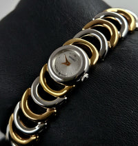 The Seiko 1E20-0370 is a women's wristwatch that was first produced in the 1990s and is in the Luxury segment. It has a heavy gold-plated case, a gold-tone dial with gold-tone hands, and a mineral crystal. The watch is powered by the 5-jewel, 2-arm Seiko 1E20 quartz movement, which is known for its reliability and accuracy. The gold-plated colors of this product are in 2 different tones: White Gold and Rose Gold. This makes the product look very different on your wrist. If you are looking for an elegant women's watch with a striking and luxurious look, the Seiko 1E20-0370 is a good option. The product you are reviewing was produced in 1996.