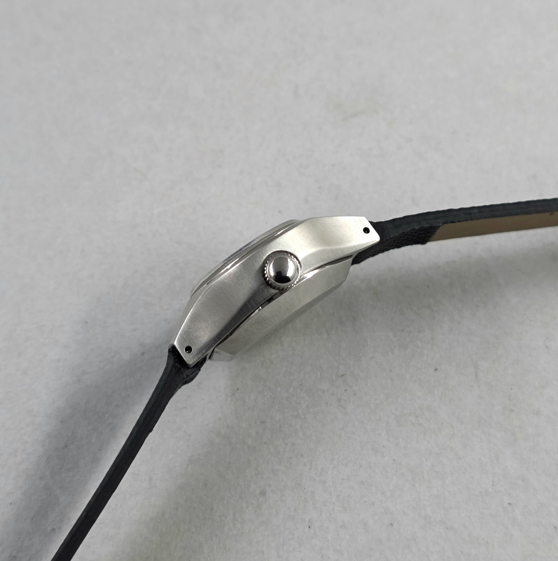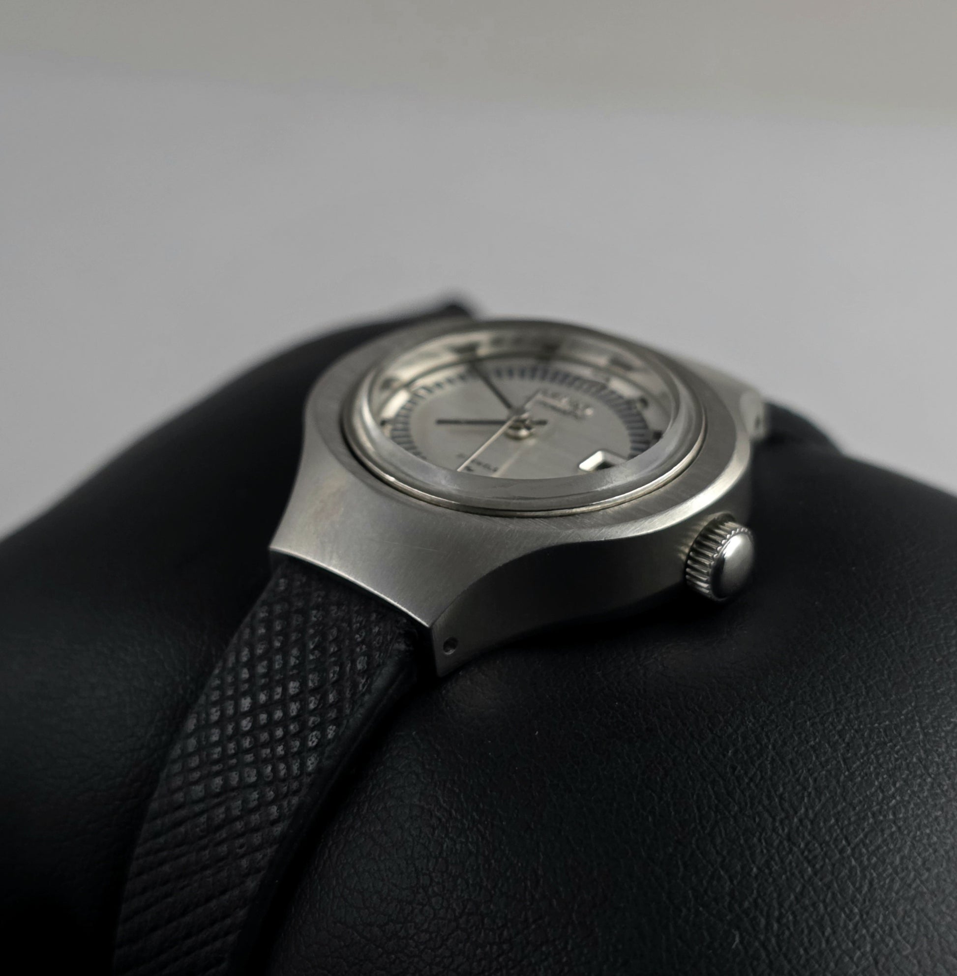 Material and Form: The stainless steel case offers a tactile quality with its brushed upper surfaces and polished curved edges.