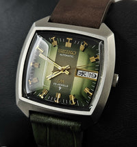 Seiko Lord Matic 5606-5120 is a striking vintage automatic watch with a unique design that contrasts with classic designs with angular and oval lines. The model was generally produced in the early 1970s and is known for its reliability and durability. The product you are reviewing was produced in 1973 and operates with a 25-jewel Cal. 5606 movement. The prismatic square glass of the product has a great appearance. The Seiko Lord Matic 5606-5120 model is a popular watch among collectors and watch enthusiasts with its rare design.