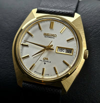The Seiko Lord Matic 5606-7000 SGP is a vintage automatic watch with a gold-plated case and a white sunray dial. Produced in 1969, the model features a 23-jewel automatic movement. The watch features a day and date function, and the day is displayed in both English and Japanese. The item you are viewing is very rare and has been produced in limited numbers. It was awarded to commemorate the 100th anniversary of the opening of Japanese railways and as the "Memorial Award for Activity Award" by the Chairman of Japan National Railways (JNR) to employees who have achieved outstanding results. In short, this is a popular watch among Seiko collectors and is known for its excellent condition and timeless design. Despite being 55 years old, it is in brand new condition, almost unused.