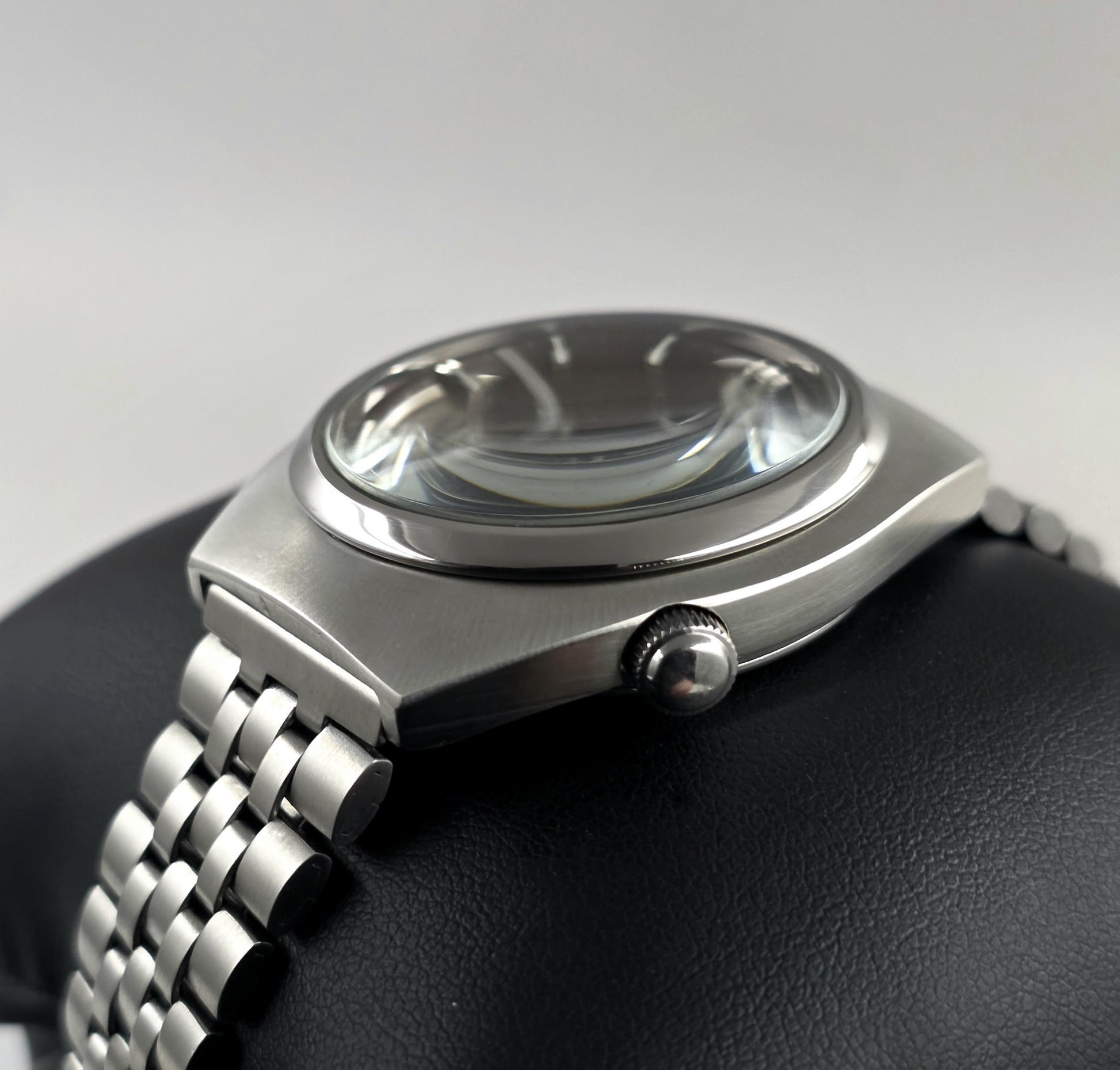 The watch's stainless steel case features sharp lines and a brushed surface finish reflecting the aesthetics of its era. As a signature of the SilverWave series, it features a screw-down crown that enhances water resistance and safety. It sits comfortably on the wrist; the original "jubilee" bracelet wraps around the wrist perfectly, offering comfortable wear throughout the day.