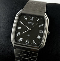 The Seiko Quartz 7832-5030 is a vintage quartz watch that was released in 1978. At times, it was just below the Lord Quartz and was more expensive than many Seiko Quartz models of the time. The Seiko Quartz 7832-5030 is a classic watch with an octagonal stainless steel case, a black textured Roman numeral dial and a date window at 3 o'clock. The watch operates with the Seiko calibration 7832 frequency. The Seiko Quartz 7832-5030 is a great choice for those looking for a vintage quartz watch that is both stylish and very durable. It is fully functional. The product you are reviewing was manufactured in 1978.