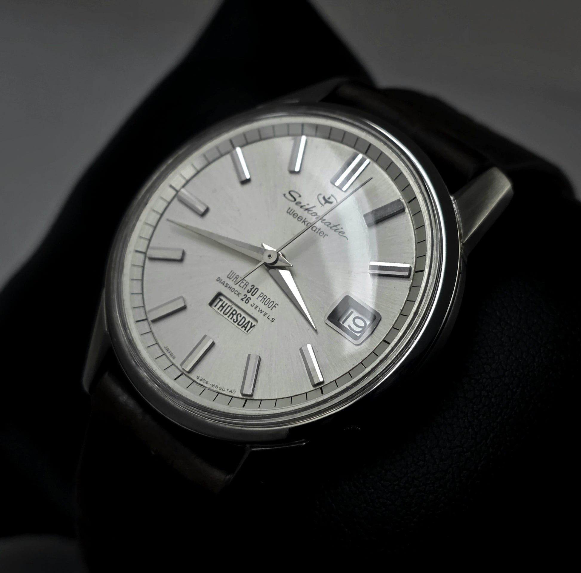 The Seikomatic Weekdater is one of Seiko's most iconic series, showcasing its mastery of automatic watch technology in the 1960s. This model, referenced as 6206-8990, is a prestigious "dress watch" designed for the needs of the business world, offering both day and date functions. A top-segment automatic watch of its time, this piece is now an indispensable classic for vintage Seiko collectors.
